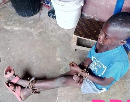 Activist, Harrison Gwamnishu who shared a video of the boy in chains, says the victim lost his mother at birth and has been living with his father and stepmother who subjects him to inhumane treatment.